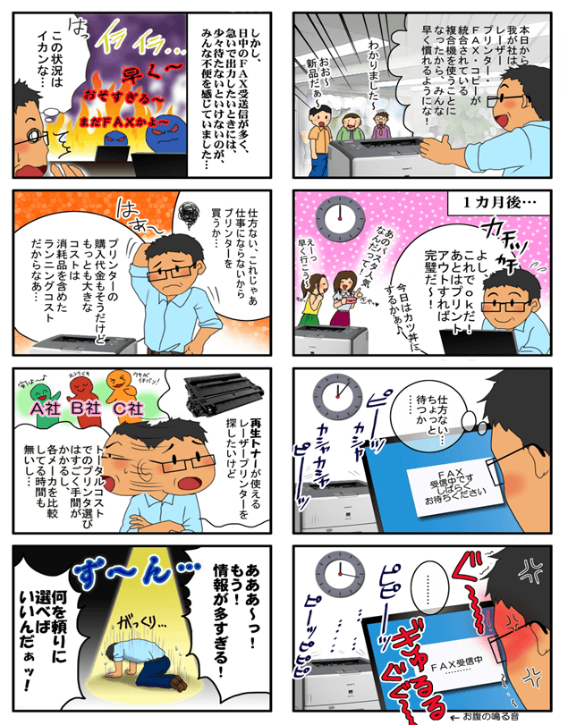 漫画で読む、リサイクルトナーカートリッジお悩みあるある